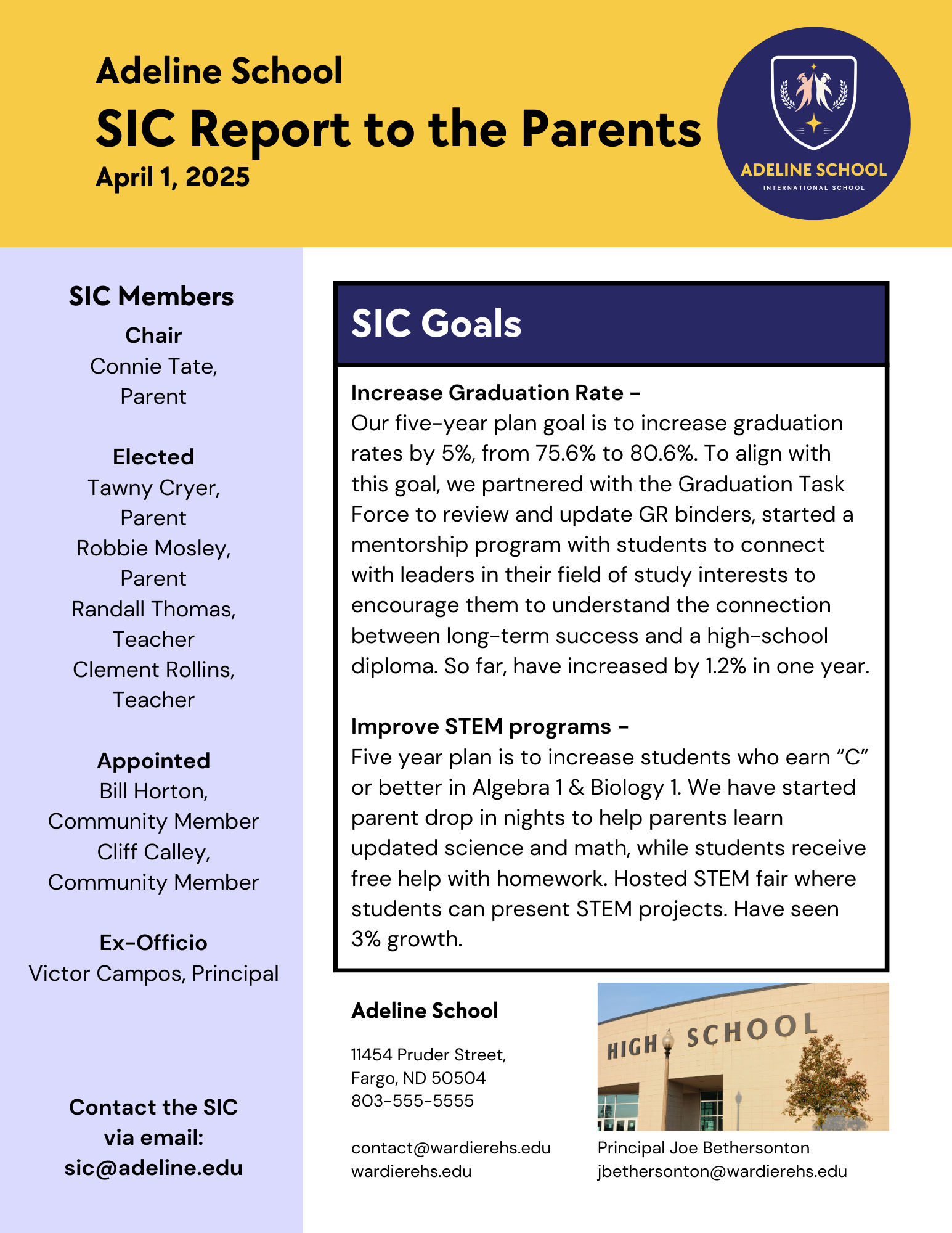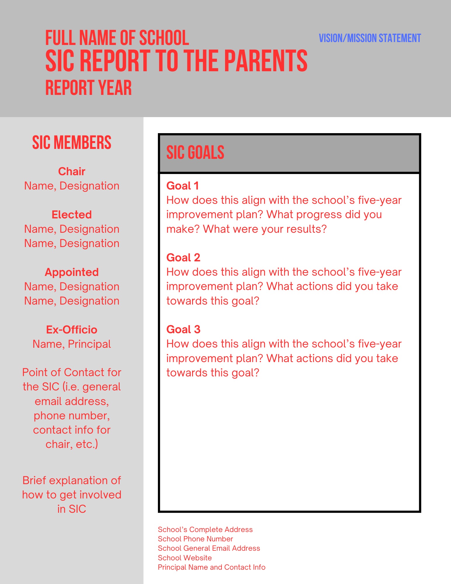 Every SIC is required by law to write and share a Report to Parents by April 30 of each year.